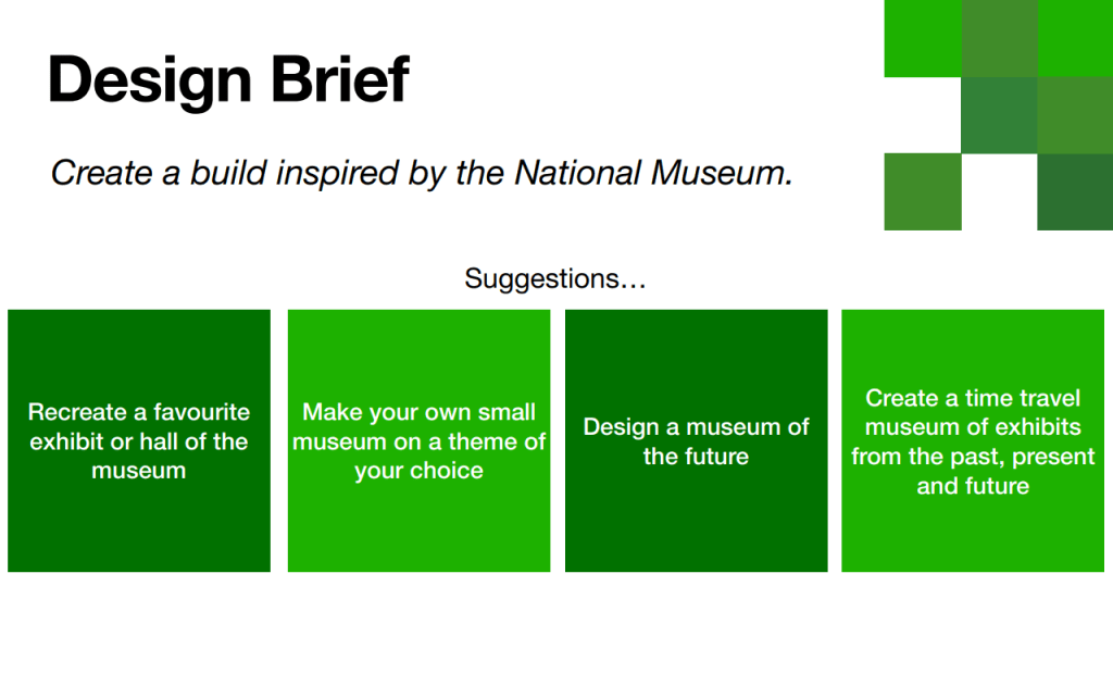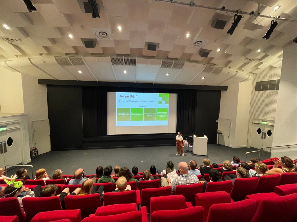 The day began in the Museum Auditorium, where teams received their design brief and timings for the day. These were the best-of-the-best builders from our build league challenges throughout the year – now tasked with creating a Minecraft Education build inspired by the museum itself.