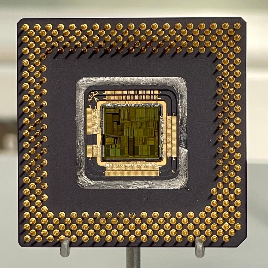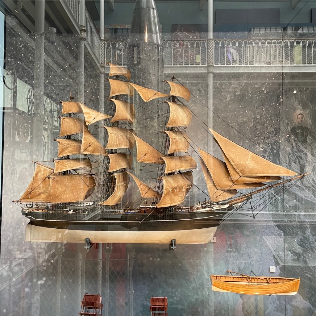 Model Sailing ship, representing a full-rigged sailing ship from the period before the introduction of practical steamships c1875ACT Apricot F1 ComputerMicroprocessor, Intel pentium A80502 SX962 containing 3,200,000 transistors, on ceramic substrate. Intel, USA, c1994
